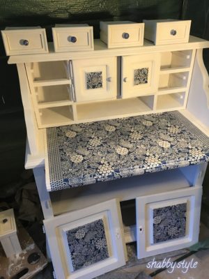 Dann habe ich den Shabby Sekretär mit zwei Schichten matter weißer Kreidefarbe gestrichen. Selbstverständlich ist die Farbe ebenfalls in den Schubladen gestrichen worden. So können die kleinen Schubladen auch herausgenommen werden und als Deko auf dem Sekretär einen Platz finden.