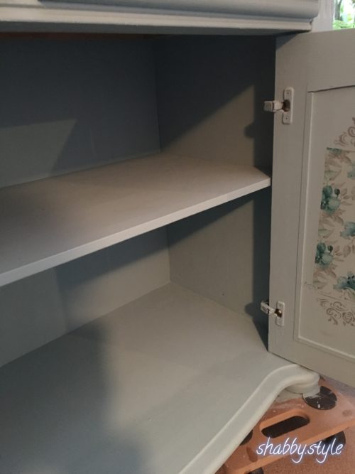 Wie auf den Bildern zu sehen ist, habe ich die Türen innen dann noch mit Serviettentechnik und Ornamenten von Schablone verziert.