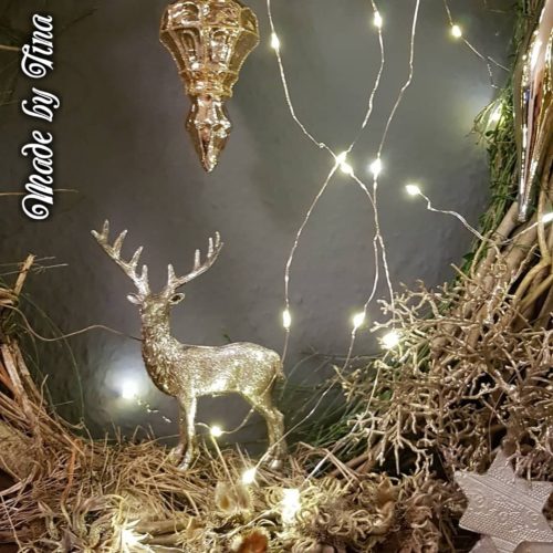 Einen Wandkranz oder einen Türkranz mit Beleuchtung könnt ihr dank der neuen zarten Lichterketten ganz unabhängig von einer Stromquelle aufhängen. Wie das geht, zeigt uns Bettina Weishoff hier in ihren tollen Bildern. Das meiste erklärt sich selbst. Aber ihr wisst ja, die Klappe halten kann ich trotzdem nicht.